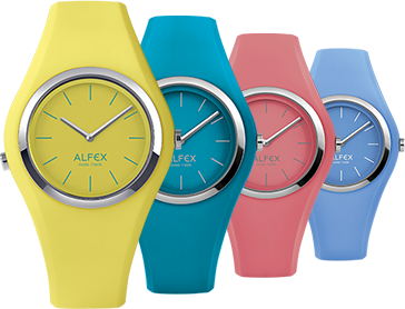 Alfex da luz y color este verano. Colores vivos, combinados con unos espectaculares LEDS que iluminan toda la esfera y que hacen de este reloj una pieza diferente. Su correa, hecho con silicona antialérgica con acabado soft, se adapta a la perfección y proporciona un tacto único. Cada color de Alfex, tiene su nombre… ¿cuál quieres que sea el tuyo?