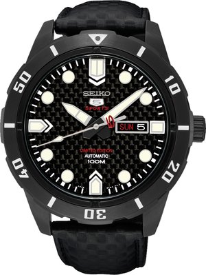 Seiko cada vez apuesta más por la suyas líneas más especiales. Solares, Kinetics y los Automáticos, que cada vez tienen más importancia para la marca. Esta vez, Seiko presenta una edición limitada de la Serie 5, automático. Imponente a la muñeca, mezcla la deportividad con un bisel giratorio, una esfera de fibra de carbono, que le aporta exclusividad y una caja de PVC negro para hacer un reloj único. Una edición limitada por los amantes de los relojes.