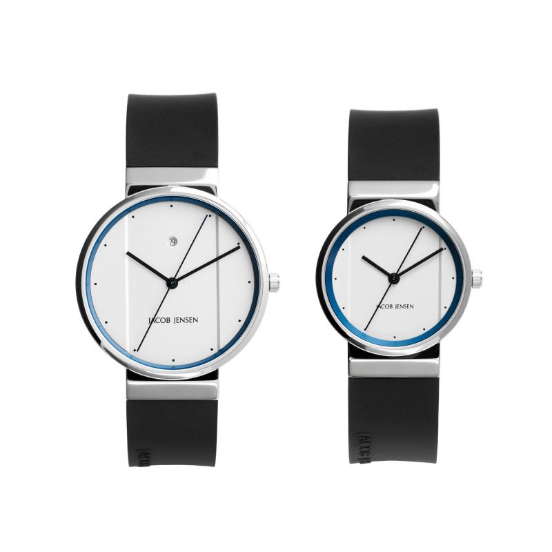 Simplicitat, Gust, Equilibri, Qualitat… Disseny amb totes les lletres. Les New Series de Jacob Jensen, ens proporcionen dues mides de caixa per tal que el rellotge s’adapti al canell de cada persona. Les esferes, sempre tenen un to subtil de color, que fan que el rellotge tingui un subtil toc informal. Jacob Jensen, el rellotge que molts imaginàvem, i no trobàvem.